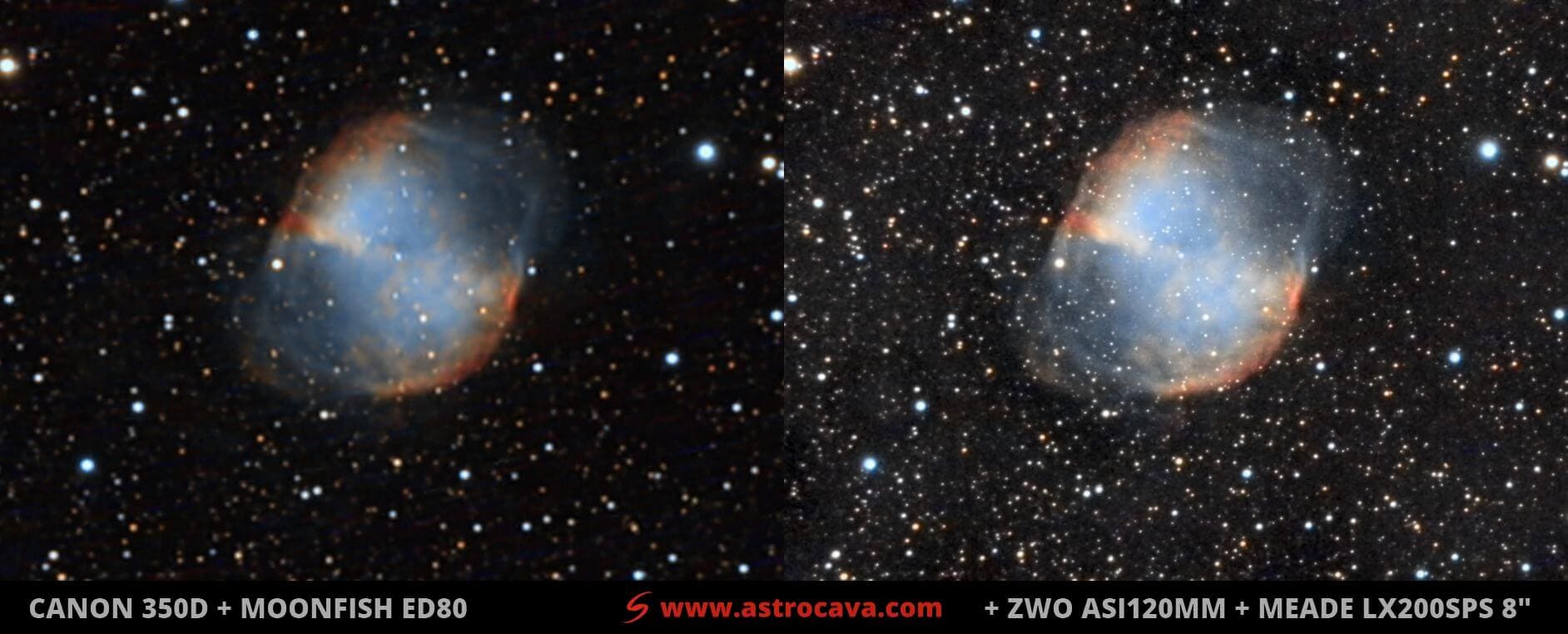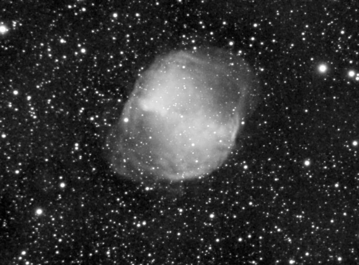 La Nebulosa Dumbbell (Messier 27 o NGC6853) es una nebulosa planetaria en la pequeña constelación de la Zorra (Vulpecula). Su nombre hace referencia a la forma de pesa de gimnasio que presenta, aunque también se denomina del diábolo o del manubrio, aunque siempre le veo más similitud a una manzana con dos mordiscos a cada lado.